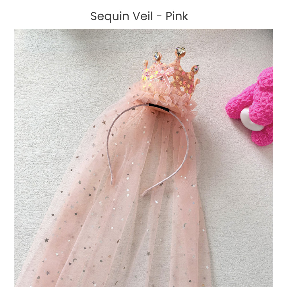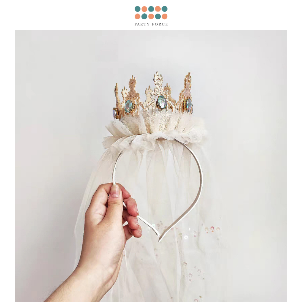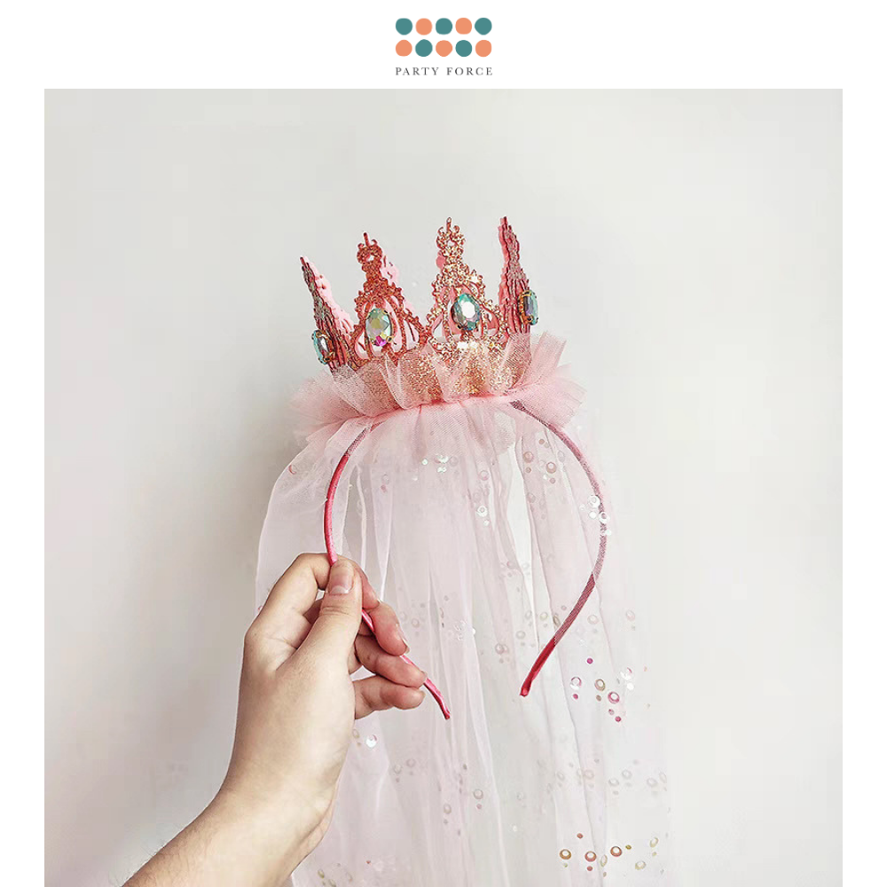 Princess Diamond Veil Headband Tiara Party Hat for Birthday Party Decoration
