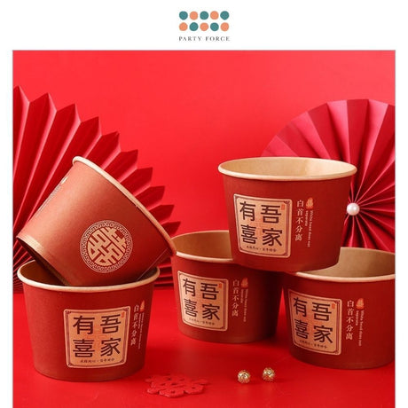 $4.90Unit price /Unavailable囍 Chinese Red Theme Happiness Disposable Paper Bowl 20pcs Set for Wedding Party