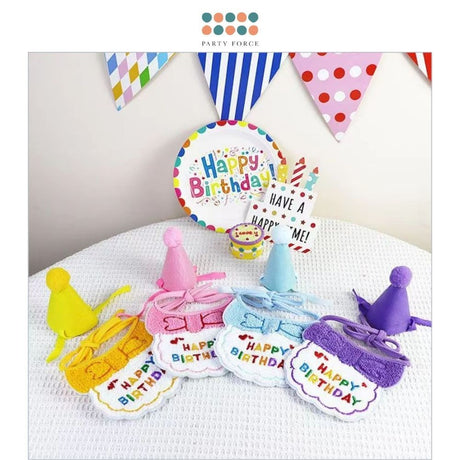 Korea Style Pets Dog Cat Colorful Birthday Scarft Hat Set for Pet's Birthday Costume