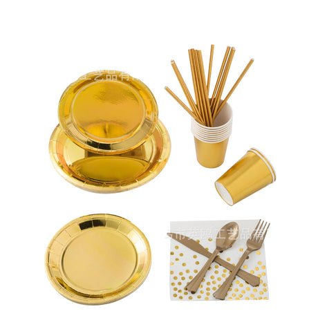 Disposable plates, cups, fork & spoons for parties – Metallic Gold