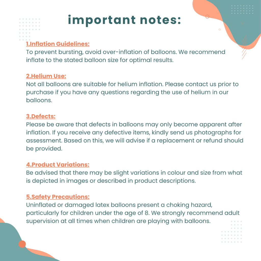 Please be aware that defects in balloons may only become apparent after inflation. If you receive any defective items, kindly send us photographs for assessment. Based on this, we will advise if a replacement or refund should be provided.