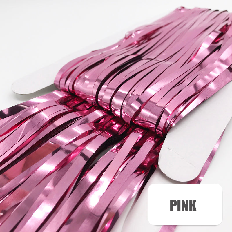 Includes one folded tinsel fringe backdrop - come with double sided tape readily attached at the back.