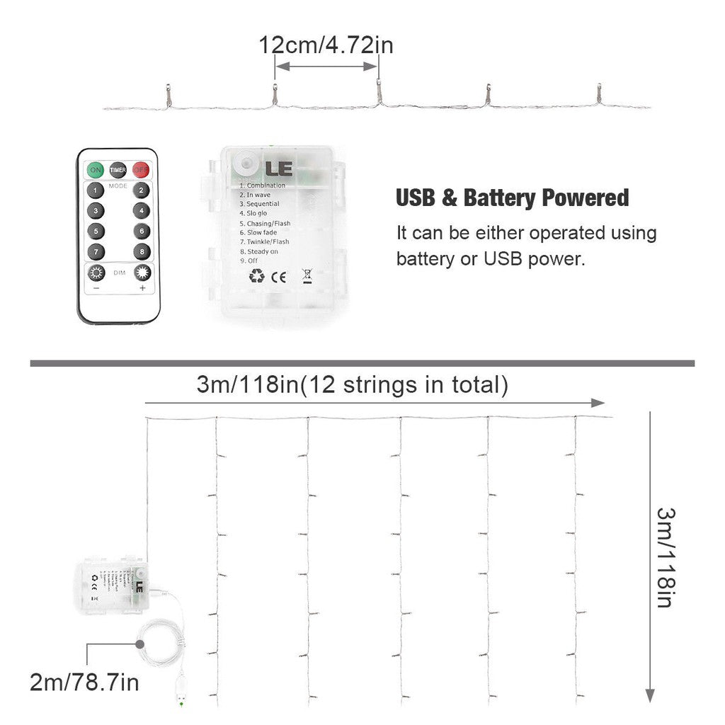 1️⃣ 3m x 3m Dropdown Curtain Lights (Ready Stock in SG)